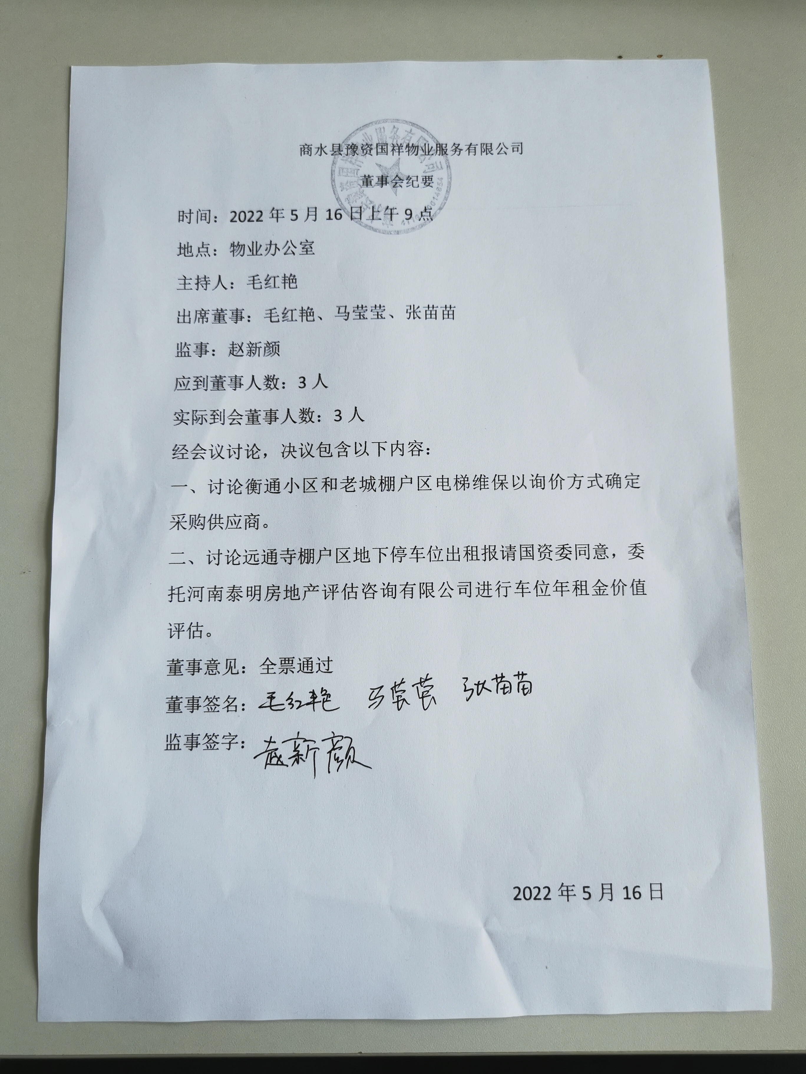 商水縣豫資國祥物業(yè)服務有限公司詢價紀要